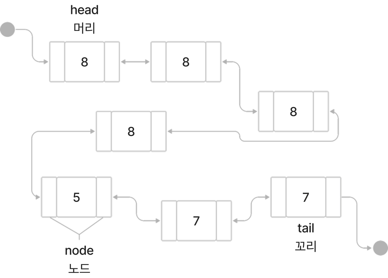 각 원소가 이전과 다음 원소에 대한 정보를 모두 가지고 있다.