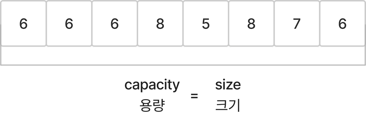 - 그렇기 때문에 현재 배열의 크기와 배열이 현재 저장된 메모리 내의 위치 외에 용량을 저장해야한다